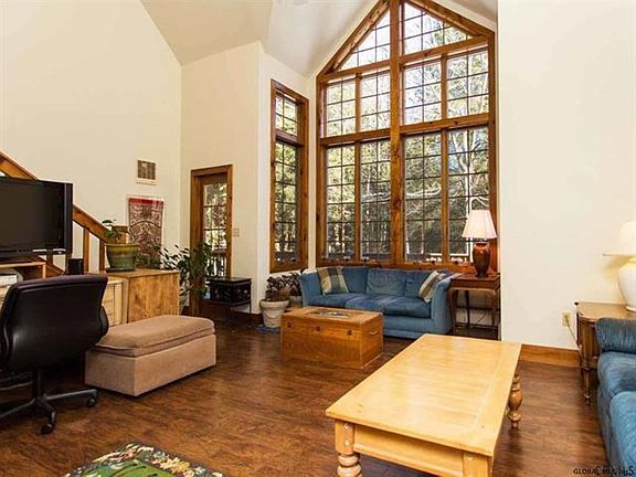 A wonderful opportunity to enjoy a custom home with 107 acres offering tranquil privacy. This inviting home is secluded with trails, pond, stream & gardens bordering the Adirondack Park. The sun-splashed great room has a wood-burning stone FP & spacious windows. The 1st floor master suite with deck, overlooks scenic pond. Featuring a screened porch, wood stove in kitchen, decks and walk-out basement. Enjoy the lifestyle of your own private nature preserve 20 minutes to Saratoga. Property subdividable.