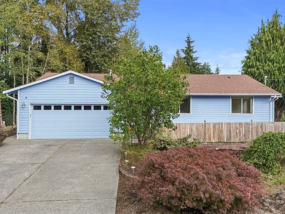 Don't miss out on this one...Charming open concept floor plan. Living room with gas fireplace, lots of windows for natural light. Large kitchen with easy to maintain countertops, stainless steal appliances. Primary suite has walk in closet, built in closet organizer. The Primary bath features a dual vanity, tile and rock oversized shower with separate jetted garden tub. Separate garden area, concrete patio in back for spring time BBQ's! Partially fenced yard with outdoor shed that provides additional storage. Heat pump to cool off in those warm summer days and tank less hot water heater to help with utility bills year round. The house is located close to all the major roads and local shopping areas with JBLM just a short drive away.