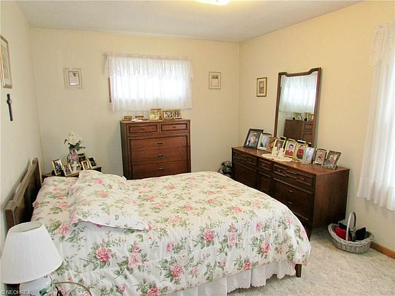 Charming ranch with three bedrooms and two full baths. Living room & bedrooms with carpet/hardwood. Finished rec room with bar, much storage, vinyl windows, well maintained, great location! One floor living; wonderful opportunity!