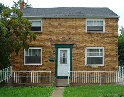 Larger than it looks! 2-story all brick home. Roomy interior features large living room AND family room that was used as a 4th bedroom! Half bath on main floor. Full dining room. Central air. Back yard with park-like setting on quiet residential street. Upstairs features three BRs with hardwood floors.