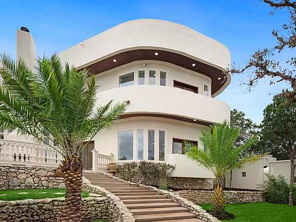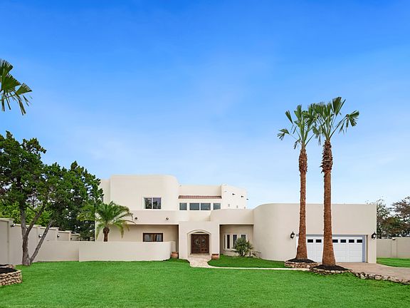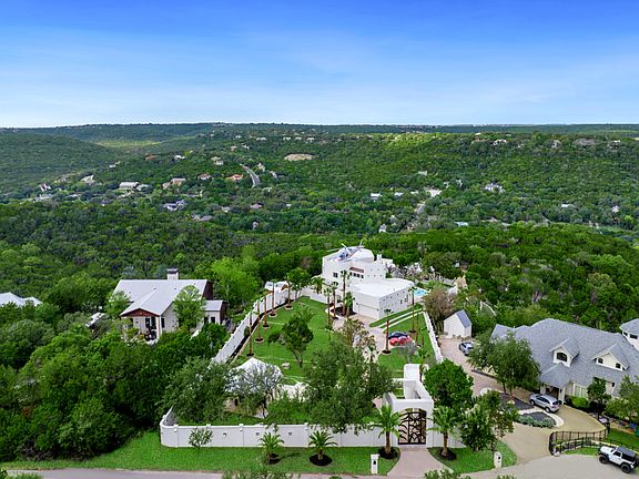 Casa Blanca offers exceptional luxury hill-country living. Situated on 3.88 acres, this property encompasses a main home and detached guest quarters, offering plenty of room to explore and host, space for all of your recreations, and a beautiful, high-end backyard. 8-18 ft stone and concrete walls surrounding the property and a custom 10 ft iron gate at the entrance that conceals the property for maximum privacy. A long driveway flanked with palm trees and fresh landscaping leads to a 2-car garage and a separate RV or boat garage towards the back of the home. Whats more, is that this property includes an approved helicopter landing pad– a truly unique feature! Upon entering the main home, you will be greeted with high ceilings and a wall of windows in the formal living room that overlooks the patio and lush backyard. The main house is nearly 4,300 sqft and is made up of four bedrooms and five bathrooms. This well-designed home draws in gorgeous natural light from the expansive windows, with loads of storage throughout, smart home technologies, a chefs kitchen, and beautiful travertine flooring. As you enter the property below the first outdoor covered patio area is a lounge room featuring elegant and captivating stone walls and ceiling. Use this space as a cigar/poker room, or a media room, or let your imagination run wild. The guest quarters in the back of the property consist of 4 additional bedrooms and 1 bathroom (2 showers) adding an additional 1,200 sqft. In total nearly 6,000 sqft of living space. No detail was spared in the outdoor space. Enjoy the natural limestone pool, spa, and jacuzzi that overlooks the gym, the three-bedroom guest house, and one of two covered patio areas. A buildable lot at the back of the property allows for an additional home to be built at your leisure. Within minutes of the property are Lake Austin and Lake Travis, offering miles of scenic water and recreational activities including Emma Long Park just down the street. Downtown Austin, the Domain, the Arboretum, the Hill Country Galleria, and more of the best retail and restaurant districts in Austin are only a few miles from your gate and Austin Bergstrom International Airport is roughly a 30-minute drive away, even shorter by helicopter