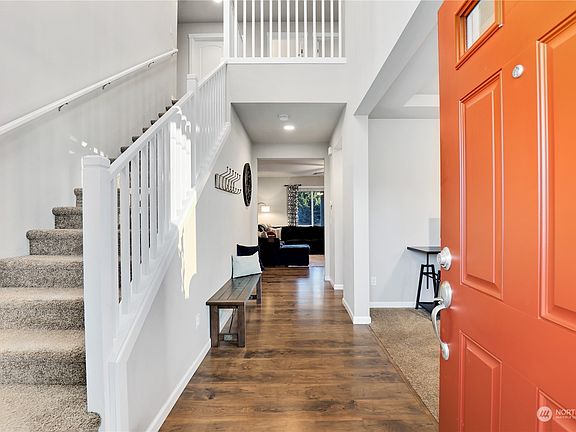 Experience comfortable living in this meticulously maintained 4-bed, 2.5 bath home nestled in the gated Grand Firs Community! With almost 2,500 sqft, you'll fall in love as you enter the main floor and see the massive open layout. You'll be greeted by a generously sized office, open stair case, great room, kitchen with eating space, & huge dining area. Upstairs, is a generously sized primary w/ attached 5-piece ensuite & HUGE walk in closet, 3 additional beds, full bath, & laundry. Private backyard is massive w/ a covered back patio for those perfect summer BBQ's that are just around the corner. 3-car garage, irrigation in front, AC, Community park across the street, & a short 20-minute commute to JBLM make this an incredible value!