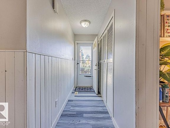 3 bed/1.5 bath END UNIT TOWNHOUSE with over 1300 sq. ft. of living space in well-managed Pinetree Village. Low condo fees of $345/mo cover all exterior maintenance, replacement, & shoveling up to your front door. Taxes for 2025: $1,861. Fully fenced west-facing yard w/deck & established perennial garden. Low-maintenance outdoor space ideal for kids or pets. Kitchen has been renovated w/new cabinets, stainless appliances, glass tile backsplash, & durable epoxy counters. Flooring is laminate throughout w/carpet only on stairs. 3 bdrms up w/full bath featuring jetted tub. Plus, main floor 2-pc bath. Basement offers laundry, storage, & flex area for office/gym/rec rm. 100 amp electrical, hot water tank replaced in 2016, newer washer & dryer. Complex replaced all windows & roofs in 2011, w/condo board responsible for ongoing exterior, doors & windows. 1 assigned parking stall plus ample street & visitor parking. Pet-friendly, up to 17” at the shoulder. This unit is occupied, but rentals average $1,800/month.