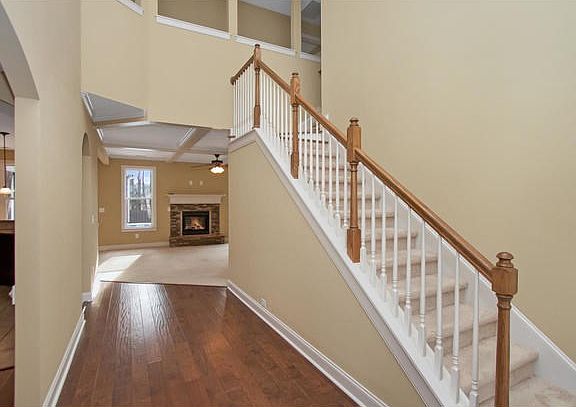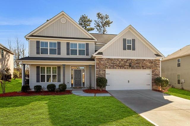 Vacation all year long in your own backyard! Lot extends past privacy fence and backs up to greenspace. This immaculate home offers dramatic entry w/ balcony and 5 bedrooms (1 bedroom down and 4 up) including 2 master bedrooms (1 down and 1 up). The larger owner's suite has a vaulted ceiling. Other features include: 3 baths, granite in downstairs bath and living room with stone fireplace, dining room and foyer with wood flooring, tile in breakfast and kitchen, eat-in-kitchen w/ pantry, granite counter tops, tile back splash, flat top stove, dishwasher, built in microwave, and refrigerator. Front and back covered porches. The almost 2700 square foot home was built in 2011 and has been lovingly cared for by its first and current owner. Relax in your tranquil back yard, complete with oversized covered back patio, low maintenance 18x36 in ground pool with a salt water chlorination system, Polaris automatic pool cleaner and a water jet pool fountain spouts that the kids will love.
