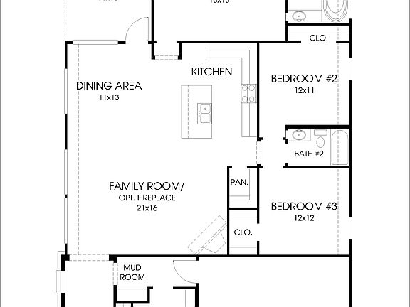 Library with French doors at the large entry way. Open family room that flows to the dining area and to the kitchen area. Kitchen features an island with built-in seating space. Large master bedroom with views of the backyard. Double doors lead to master bath with two vanities, a corner garden tub, a glass-enclosed shower and a large walk-in closet. Mud room leads to the utility room and a two-car garage.