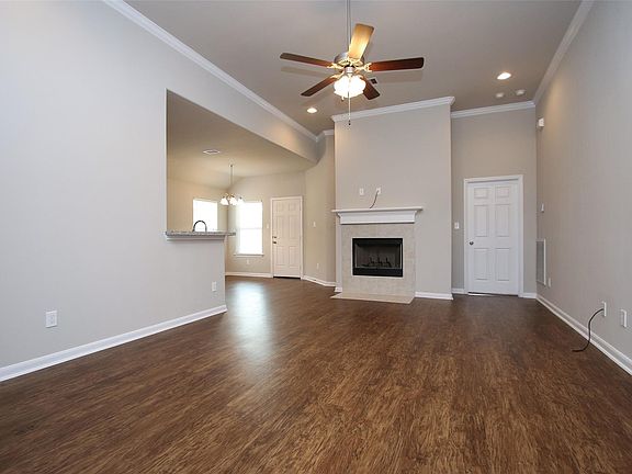 Carpeted roomsStainless steel appliancesCeiling fansLaminated floorsGranite countertopsFamily room with fireplaceCovered patio