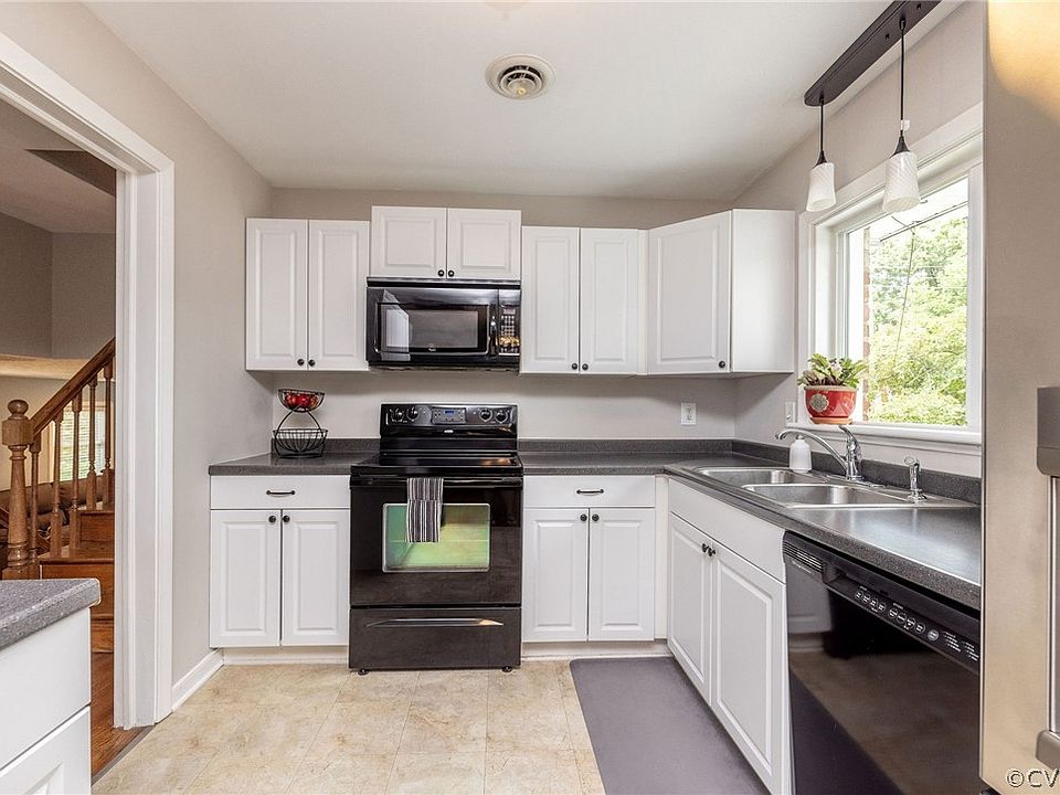 Super cute 4 bedroom 2.5 bath tri-level in the West End loaded with charm! Upon entry is the living room with hardwood floors,, brick wood burning fireplace with decorative mantel, picture window & coat closet. Dining room with chandelier, built-in cabinet & deck access. Kitchen features tile floor, pendant light, ample counter & cabinet space & pendant lighting. Step down to the family room with wall to wall carpet, recessed lighting, utility closet & full bath with single vanity, tile floor & tub/shower combo. Bedroom 4 has carpet, ceiling fan & walk-in closet; perfect home office. Additional room with LVP built-in shelving & walk-out access. Upstairs the primary bedroom comes complete with hardwood floors, sliding door closet & private half bath with tile floor & single vanity. Bedrooms 2 & 3 both have hardwood floors, ceiling fans & sliding door closets. Additional full bath has tile floor, single vanity, tub/shower combo & linen closet. Home also comes with freshly painted interior, large back deck, big fenced in backyard with detached storage shed, plus so much more. Conveniently located to it all, just minutes away from shopping & restaurants! Don't wait, won't last long!
