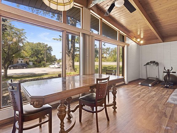 Welcome to this 3 bedroom, 2 bath ALL-BRICK ranch tucked away on a cul-de-sac lot in desirable Munster with extra yard on the side for your outside enjoyment . Step inside to a light-filled living and dining area with a full wall of floor-to-ceiling windows, vaulted wood-beamed ceilings, exposed brick walls and a striking stone-front fireplace--the perfect centerpiece for gatherings. The home boasts three spacious bedrooms, two with double closets. Main bathroom is fully updated with floor-to-ceiling tiles, marble shower and a skylight that bring in natural light. A bonus room provides ample storage room or flexibility for an extra bedroom/office/exercise room etc. All kitchen appliances plus washer, dryer, freezer and water softener are included. Outside, enjoy a large rear patio, fire pit, and a 7x10 brick storage shed for all your outdoor needs. Enjoy easy access to Chicago and the benefit of low Indiana property taxes and Munster's highly-rated schools. If you're looking for a solid brick ranch in a private setting with plenty of character, this one is a must-see.