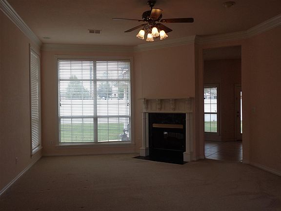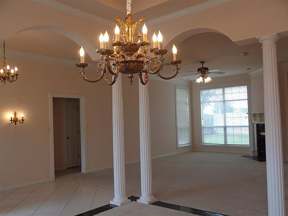 This is a super lovely home that has been well loved. It has a front formal dining room with a fantastic ceiling treatment, that could be a dining room or a second living area. The main living area is massive, with high ceilings and a see thru'' fireplace between living room and dining area! Simply gorgeous! The dining area overlooks the covered patio, and is so cozy in the winter with the fireplace glowing in the background at mealtime. The kitchen has solid surface countertops and large breakfast bar. It has top of the line appliances, microwave, dishwasher a disposal, range/oven and refrigerator. The carpets are recently replaced and look like new. The tile floors separate all the rooms. the "office" is located to the right side of the 2 car garage that has safe room in it. It would be a fantastic workshop for any handyman! The sidewalks in front are lined with bricks. There is a sprinkler system, security system, and surround sound. You need to see these high (and unique) ceilings. The attic has lots of room to add bonus room and a drop down staircase in the garage that is easy to get to. The master suite has a WP tub, separate shower and his and hers closets. The woodwork in his gem is amazing, with lots of crown molding and decorative columns. Extras include central vac, sidewalks to the backyard, columns on the front porch, under counter lighting in the kitchen and much more. Call Jeanne Rock to set up an appointment at 580-355-7625.