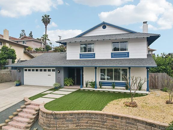 BEAUTIFULLY UPGRADED LA MESA HOME | 4 BEDROOMS + BONUS ROOM | FIRST-FLOOR BEDROOM & BATH | STUNNING MOUNTAIN VIEWS | PAID-OFF SOLAR. This beautifully updated La Mesa home combines exceptional curb appeal with a spacious, open-concept layout and a variety of high-end upgrades throughout. Upon entering, you're greeted by a bright and welcoming living space that flows seamlessly into the kitchen and bonus room, all framed by large windows that fill the home with natural light and offer easy access to the backyard. The first floor features a bedroom and bathroom, ideal for guests, extended family, or a private home office setup. The gourmet kitchen features white shaker cabinetry, dark stone countertops, a wishbone tile backsplash, a farm-style sink, stainless steel appliances, and an oversized peninsula with bar seating. Both bathrooms have been tastefully remodeled with upscale finishes, modern vanities, tile work, and updated flooring. Upstairs, you'll find three additional spacious bedrooms. The primary suite includes access to a private balcony with panoramic eastern mountain views—ideal for morning coffee or relaxing evenings. Throughout the interior, you'll find custom paint, recessed lighting, crown molding, wood flooring, and plush carpet that bring warmth and sophistication to every room. The fully landscaped backyard is perfect for entertaining, complete with multiple seating areas, a composite deck, stacked stone raised walls, synthetic grass, and paver walkways. The side yard offers built-in storage and room for RV or boat parking. This home includes a two-car attached garage, a fully paid-off 10-panel solar system for energy savings, a newer HVAC system, a tankless water heater, and energy-efficient windows. Prime Location: Convenient access to the 8, 94, and 125 freeways. Just minutes from shopping at Grossmont Center, Costco, Trader Joe’s, Target, and local favorites on University Avenue. Close to Helix Charter High School and other excellent La Mesa schools. All appliances convey, all kitchen appliances (excluding the microwave), & includes the washer and dryer.