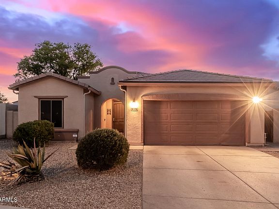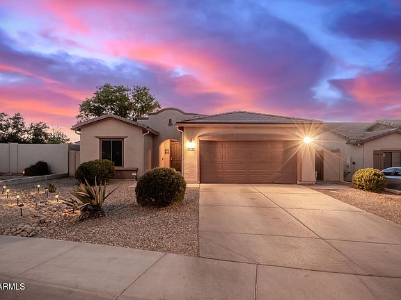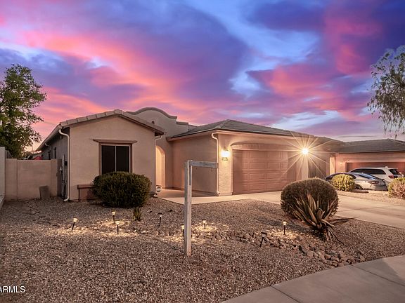 Beautiful home with POOL in Estrella Mountain Village! Providing 3 beds, 2 baths, 2-car garage, & a manicured landscape. Discover a desirable great room, perfect for entertaining! Designed paint, tons of natural light, tile & wood-look floors in common areas, and plush carpet in bedrooms. The impressive kitchen boasts: SS appliances, New dishwasher, touchless faucet, granite counters, a mosaic tile backsplash, wood cabinetry, recessed lighting, a walk-in pantry, and a 2-tier island w/breakfast bar. Cozy den for an office! The main bedroom has outdoor access and an ensuite with two vanities, separate tub/shower, & a walk-in closet. If gathering is on your mind, the backyard oasis awaits! Promising year-round fun with a covered patio, well-laid pavers, & a sparkling pool. New AC 2024 !WOW!