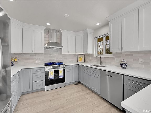 So much home and so much more! Fantastic new lower price on this large 4BR 4BA townhome in Ken Caryl Ranch with over 2400 finished square feet. Fully remodeled kitchen with quartz counter and most all new stainless steel appliances. Quality cabinetry with dove-tailed, soft close drawers. New tile backsplash and gorgeous range hood. The spacious main level features a sunken living room with fireplace, private dining area and bright kitchen nook next to refinished deck with views of park and open space. The upstairs has a large primary bedroom with ensuite bath and walk-in closet. Two other large bedrooms and full bath upstairs. The walkout basement has a large 4th bedroom, full bath, a large rec room/den and utility room with plenty of storage space. Walk out of the basement to a fenced in patio. Full access to the incredible Ken Caryl amenities including 4 pools, community center, a dozen parks, pickle ball, tennis courts, disc golf, a private open space in the foothills and more! Come and experience this amazing opportunity for under $500,000.