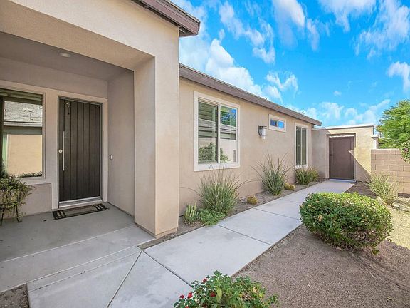Exquisite Contemporary Living in the Prestigious Gallery at Indian SpringsWelcome to an exceptional opportunity to own an elegant Plan One residence within The Gallery at Indian Springs--a private, gated enclave of only 25 distinguished homes. This modern masterpiece offers a seamless blend of refined design and everyday comfort, nestled in one of the desert's most coveted communities.Step inside to discover a freshly painted, light-filled interior where expansive windows and a rolling wall of glass blur the lines between indoor and outdoor living. Sophisticated motorized and manual custom window treatments throughout the home provide effortless control of light and privacy.The heart of the home is an entertainer's dream--an open-concept kitchen featuring striking countertops, a massive center island, sleek built-in appliances, and abundant cabinetry. The spacious living and dining areas flow effortlessly to the south-facing patio, designed for both tranquil relaxation and vibrant entertaining.Retreat to the private, generously sized primary suite, complete with direct access to the patio and pool, an oversized spa-style shower, dual-sink vanity, and a large walk-in closet. Two additional guest bedrooms are thoughtfully positioned on the opposite side of the home for maximum privacy--one a well-appointed ensuite, the other adjacent to a stylish guest bath.Additional features include a dedicated laundry room with storage and sink, a spacious two-car garage with a Level 2 EV charger, and a separate golf cart garage. A full-home water softener system enhances everyday living.Outdoors, enjoy stunning mountain views from the resort-style patio, complete with a sparkling pool and a motorized roll-down screen for added shade and seclusion. The community offers a lush greenbelt and pet-friendly park, all just minutes from world-class dining, shopping, golf, and entertainment on the Indio-La Quinta border.Sellers are highly motivated and may offer a credit toward an interest rate buydown--an exceptional opportunity for savvy buyers seeking both value and luxury.Don't miss your chance to call this rare desert gem your own.