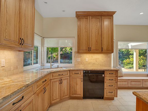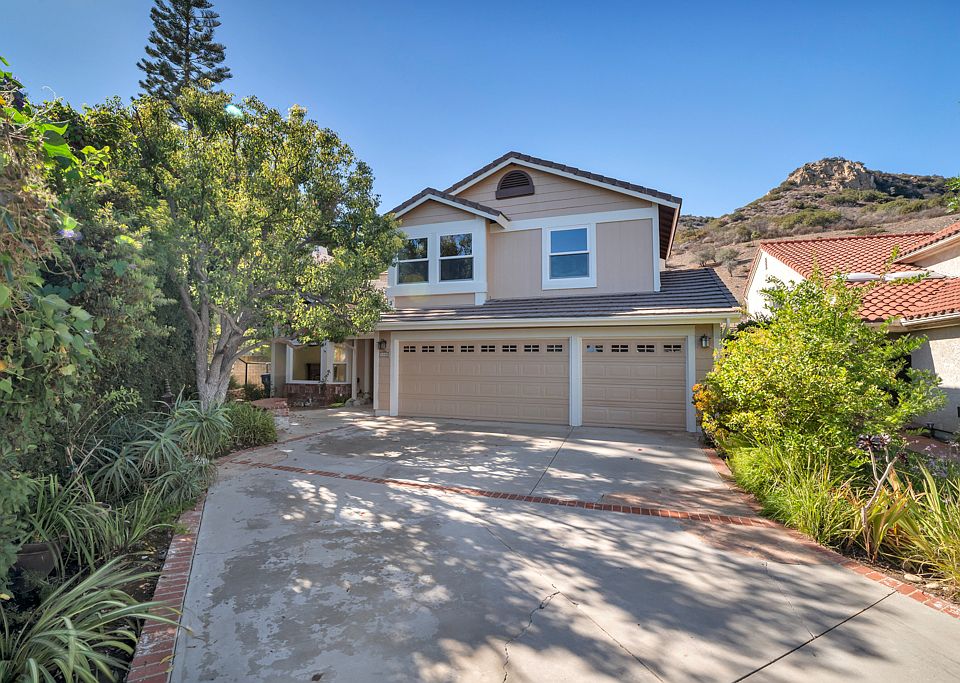 Welcome to your dream home! Nestled on a quiet cul-de-sac in the highly desirable West Hills neighborhood, this beautifully upgraded 5-bedroom, 3-bathroom residence offers the perfect blend of luxury, comfort, and functionality complete with a resort-like backyard oasis. Step inside to a gourmet updated kitchen featuring elegant granite countertops, a custom tiled backsplash, and a cozy sunken window seat with tranquil views. The kitchen is fully equipped with a double oven, refrigerator, stove, microwave, dishwasher, wine refrigerator, and ample cabinetry. Enjoy casual meals in the bright eating area or entertain in the formal dining room, complete with a built-in bar area ideal for hosting guests. The spacious primary suite offers peaceful mountain views from every window, a large walk-in closet, and a luxurious en-suite bathroom featuring a marble double sink vanity, spa Jacuzzi tub, separate rain shower and stunning designer tile finishes. With 4 bedrooms and 2 baths upstairs and 1 bedroom and 1 bath conveniently located on the main floor, this home provides flexible living arrangements. Freshly painted with brand new carpet and custom window coverings throughout, it's truly move-in ready. The resort-style backyard is an entertainer's dream complete with a pool and spa, a built-in water slide, lush landscaping, and sweeping mountain views. Dine al fresco under the covered patio with ceiling fans, or fire up the built-in BBQ for a perfect evening outdoors. Additional highlights include a full laundry room with washer and dryer, and an attached 3-car garage offering plenty of storage. Don't miss this rare opportunity to lease a stunning home in a prime location with all the amenities of luxury living.