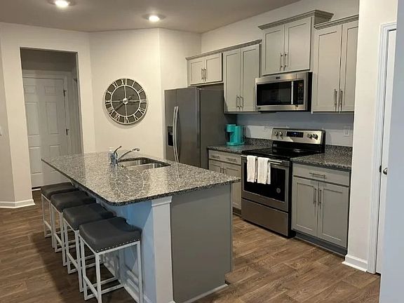 Recently built townhome in a great location perfect for an easy commute in Charlotte! Close to Uptown Charlotte, Northlake, Huntersville or Mountain Island. This location is convenient to everything. The home features an open concept dining room, family & kitchen w/ a large island. The kitchen includes shaker style cabinets, granite countertops, stainless steel refrigerator, electric range, microwave & dishwasher. Upstairs you will find a spacious primary suite with large walk-in closet and on-suite bathroom with double sink, large shower and linen closets. There are 2 additional bedrooms and a full bathroom with tub. Washer and dryer included as well. One car garage and driveway to accommodate up to 3 cars total. Small patio in the backyard. Tesla EV Charger in garage!!