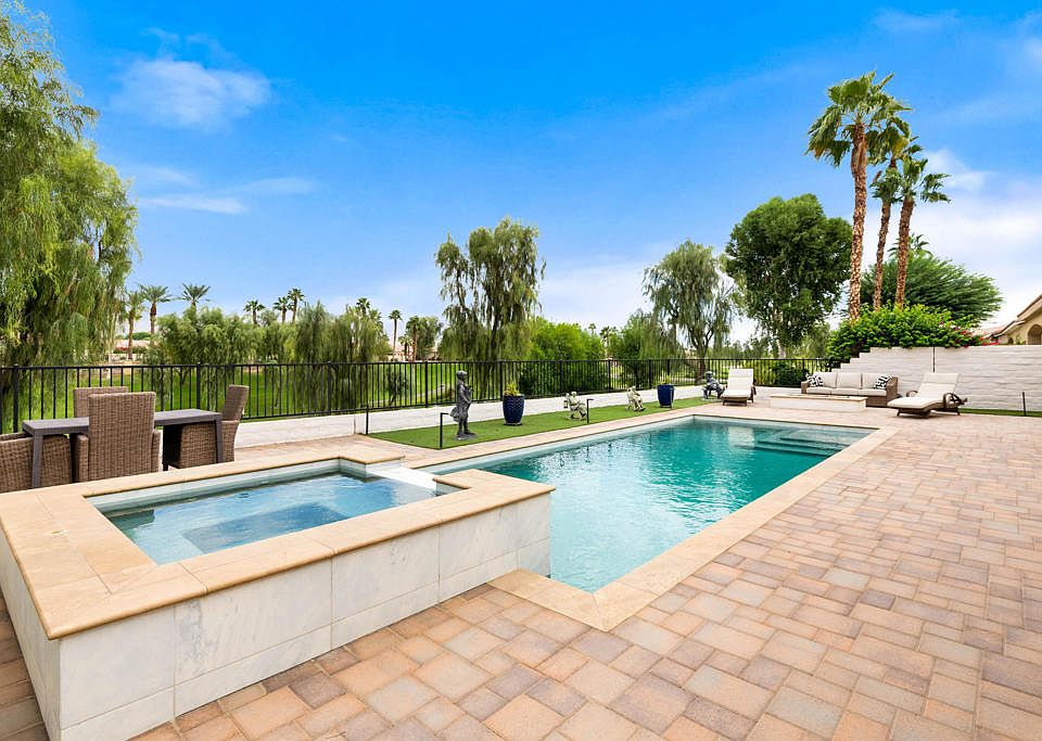 This stunning north-facing San Benito model offers panoramic mountain views overlooking the fairway's greenbelt without the worry of incoming golf balls. The backyard is a true entertainer's oasis, featuring a new pool and spa plus a built-in barbecue; perfect for gatherings or private relaxation. Inside, you'll find 2 bedrooms, 2 bathrooms, and a versatile two-room office/flex space that can serve as a third bedroom, artist studio, and/or den. The spacious primary suite provides comfort and privacy, while the open kitchen with breakfast nook flows seamlessly for everyday living. Additional highlights include a 2-car garage plus golf cart garage, ample storage, and all the features that make the San Benito floor plan one of the most popular in the community. This home combines views, style, and a brand-new pool and spa: an incredible opportunity you won't want to miss!