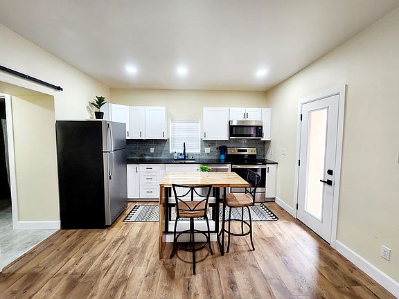 Beautifully remodeled, historic casita. Off-street, gated parking, granite coutnertops, new AC/heat, and small private backyard courtyard area. Built-in butcher block kitchen table, laundry room with washer/dryer, and hardwood floors make this a great place to live! The Casita is on a property with the Historic Hazeldine house at 306 Hazeldine, 6 other units and a shared common area with mural and artificial turf. Two blocks from the railyards, and a quick walk or bike ride to all the coffee shops, restaurants, and bars that make up downtown Albuquerque, and only a quick bike ride to the river and the river trails. 600sq/ft unfinished workshop space available for an additional fee! Prefer 12 month minimum lease. Owner pays water and refuse, tenant pays electric. Property is NOT furnished.