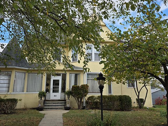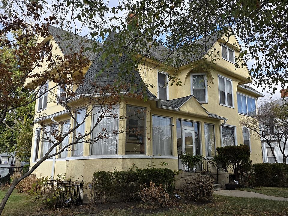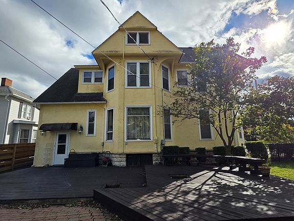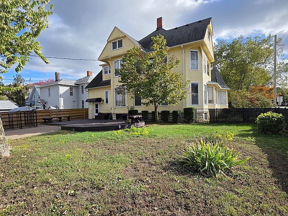 Discover timeless elegance in this stately 1897 Victorian gem, gracefully positioned on a spacious, fenced corner lot. With 4 large bedrooms and 2 1/2 baths, this home seamlessly blends historic charm with modern updates, featuring soaring 10-foot ceilings on the main level and 9-foot ceilings upstairs. From the moment you arrive, the enclosed wrap-around porch and original etched glass front door welcome you into a world of craftsmanship and character. Inside, you'll be enchanted by the beautifully preserved wood staircase, gleaming hardwood and mahogany floors, exposed beams, intricate crown molding, and breathtaking leaded and stained glass windows. The formal living room showcases custom moldings, pocket doors, and architectural beams, while the elegant dining room offers rich mahogany flooring, chair rail, and ornate crown molding-ideal for hosting unforgettable gatherings. The spacious eat-in kitchen is a chef's delight, featuring Corian and butcher block countertops, stainless steel appliances, abundant cabinetry, and a walk-in pantry. Upstairs, four generously sized bedrooms include a tranquil primary suite with an adjacent sitting room or nursery. The convenience of 2nd floor laundry and a full staircase to the walk-up attic (ready to be finished for additional living space) adds to the home's versatility. Step outside to enjoy the two-tiered deck overlooking the private, fenced yard. A 2 1/2 car garage and ample off-street parking provide practicality, while updated electrical and plumbing, radiant heat, and a charming (non-operable) fireplace in the study enhance comfort and style. Lovingly updated by the current owners, this home is a true labor of love. Don't miss your chance to own a piece of history and continue its legacy. This Victorian beauty is ready to welcome its next chapter- YOU!