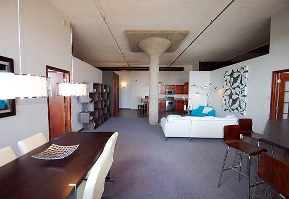 Say ''Hello'' to this enormous one bedroom Clark Place condo! Located on Grand Rapid's quickly developing west side, this condo is an entertainer's dream. Built in bar with a kegerator, huge kitchen with granite and a peninsula, and built-in projector, projector screen, and sound system make it the perfect spot to invite family and friends over. Tons of free parking for them helps too! There is even a desk that converts to a murphy bed for additional sleeping space. This building was previously an American Seating furniture manufacturing facility so this condo comes with unique features like no other place downtown, such as concrete pillars all the way up to the soaring 12.5' ceilings. This is one of the only units that chose not to develop an additional room blocking the valuable south facing windows which provide a TON of natural light! Durable, high-end vinyl flooring, large walk-in closet in the master, one garage space included, and incredible views of downtown make this condo a no-brainer. Schedule a showing today! Tenant responsible for gas and electric bills, as well and any cable and internet you chose to have installed.