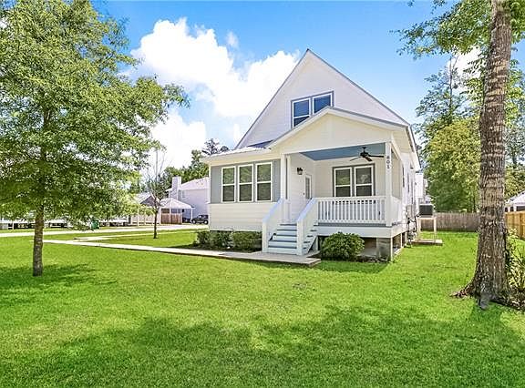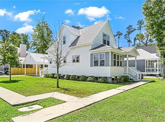Come be in the middle of the action in Old Mandeville! Fantastic location, quaint property only 12 years young, metal roof, front and rear porches, built for energy efficiency, hardy plank exterior, tankless water heater, Low-E windows, TechShield radiant attic barrier, recently painted interior, 9-ft ceilings throughout, open kitchen with island and granite counters, stainless appliances including refrigerator, primary bedroom downstairs has double vanity sinks, custom shower, and separate tub, double carport off Relacher Dr with attached lockable storage room, lawn maintenance included in the rent, located less than a block from the Tammany Trace biking/jogging/walking trail and only 7 blocks to the lakefront plus a great location for commuters! Application subject to credit/background checks and verification of employment/income