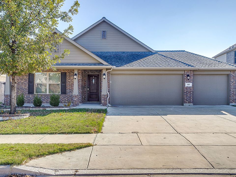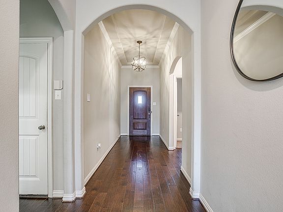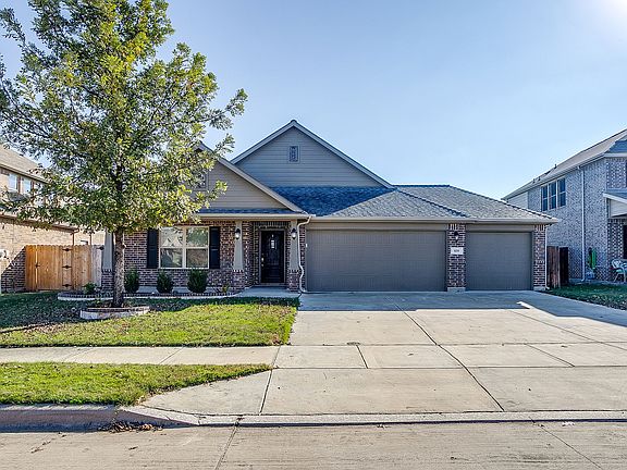 Walk into this beautifully maintained 4 bedroom home featuring 2.5 bathroom and a large 3 car garage that sits on a oversized lot! Located in the highly desirable Northwest ISD! As you enter, you will notice tall ceilings, crown molding, wood flooring, rounded archways and recessed lighting through the home. With a flexible and open floor plan you will have room for everyone! Two bedrooms located up front with large closets and a full size bathroom. Separate laundry room with washer and dryer hook ups available. 3rd bedroom is tucked away and has a large closet. Formal dining area or could be a great home office. Half bath for convenience for your house guests. As you walk into your oversized living area you will see built ins shelving, ceiling fans, and natural lighting. This then opens up into your kitchen and dining area. With a kitchen island, double sinks, built in microwave, gas range, granite countertops, walk in pantry and stainless steel appliances. Don't forget about the cute little windows for natural lighting! Master bedroom with ceiling fan has double doors leading to your ensuite bathroom. With tile flooring, separate jetted garden tub, walk in tiled shower, double sinks and a huge walk in closet!