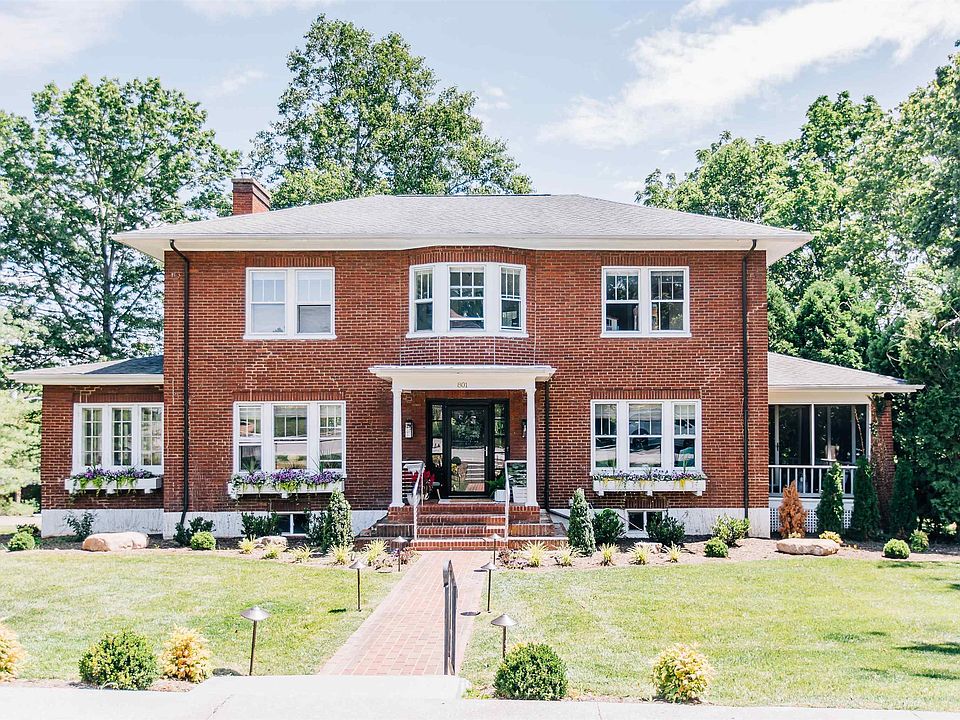 Ideally located on one Blacksburg’s most prestigious streets in the Miller Southside neighborhood, this elegant, spacious, and light filled colonial brick home offers 3,236 square feet with 3-4 bedrooms, 4 full baths, 1 half bath, + basement with 1500 sq. feet (40% finished, + expansive unfinished side with 3 area rooms and plentiful storage space) Positioned on a corner triple lot (generous and uncommon for in town living) this beautiful home is within convenient walking distance to downtown and the Huckleberry Trail. An open, well-proportioned main floor features a spacious entry hallway; a large dining room leads out to a screened porch, a spacious living room, sunroom, a beautiful renovated kitchen, adjacent laundry and pantry (2016), bathroom with large Jacuzzi tub, and 1/2 bath powder room completes the main level. Up the staircase a stunning landing with large windows overlooks the grounds and leads up to 3 spacious bedrooms & 2 full baths. More info in Documents. Ask agent.