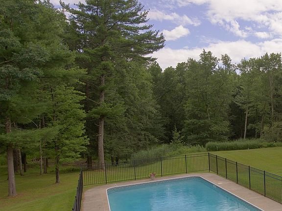 Follow a private drive through lakeside woods to 801 Dugway Road, a renovated country home nestled in 13.9 acres of sprawling lawns, woods, and old stone walls. Formerly used as the live-in studio of a well-known painter, this site boasts the potential for a myriad lifestyles and uses, be it an artists studio, wellness retreat, family country home or some combination of the three. The main house, at a spacious, 2800 sq ft flows openly between living areas which include a full living, and dining room, a big bright eat-in-kitchen with sliding glass doors that open up to the slate patio and pool, and a fire room with burning wood stove. Touches of modern-farmhouse character, including accent wallpapers, custom lighting, and locally sourced stone floors, add a whimsical flare. Above the family living area find a refurbished main bedroom complete with a walk-in closet with antique lighting and room for vanity, and a brand new ensuite bath with soaking tub, octagonal ventini marble floors, and custom glass and ceramic-tiled shower/accent wall. The second level also features panoramic wooded views between three additional bedrooms and a full hall bath, also newly updated with ceramic tile. Grounds include a 4 horse barn, a 2000 sq ft garage with an attached foundation platform that could be used as outdoor studio/recreation space or as foundation for an accessory structure, and water rights to Beaver Lake. 801 Dugway is as private as it is convenient to local attractions, just around the corner from charming Chatham, Spencertown, and Hawthorne Valley. Surrounded by Hudson Valley farms you are sure to eat well with locally grown groceries and farm-to-table establishments.Take advantage of all four seasons, with garden parties around the pool and bandstand in the summer, cozy fires in the winter, strolls on amidst dazzling foliage in the fall and fresh blooms in the spring. Enjoy complete peace and quiet (total lack of road noise!), all only 2.5 hours from NYC, 20 minutes to hudson/amtrak and 20 to Great Barrington, MA.