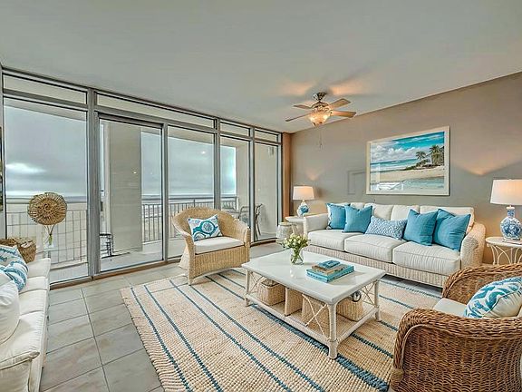 Immaculate 10th floor unit with Spectacular views of the ship channel, watch the ships by day and shimmering lights by night! New 2 TON geothermal a/c unit (2023) 2 bedroom, 2 bath unit with floor to ceiling windows, stainless steel appliances with custom tile and bamboo flooring. State-of-the-art amenities include the refreshing resort-style pool, fitness center with sauna, tennis & basketball, separate children's pool and indoor Kids Center, covered dog park and much more! Maintenance fee includes flood & windstorm ins, free cable and internet, exterior maintenance (doors, windows and balconies), library, game room (pool, shuffleboard, air hockey, ping pong), children's playroom, ice machines, beach chairs/canopies & lanai w/ catering kitchen! Low/Bulk Rate Utilities (electricity, water & sewer)! Come live like you are on vacation every day in the top beachfront condo complex on the gulf coast! Fully furnished! Excellent investment and short-term rental opportunity!!