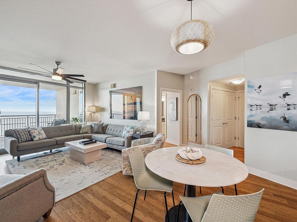 Beachfront escapeSpacious balconyElegant bamboo wood flooringOpen-concept design