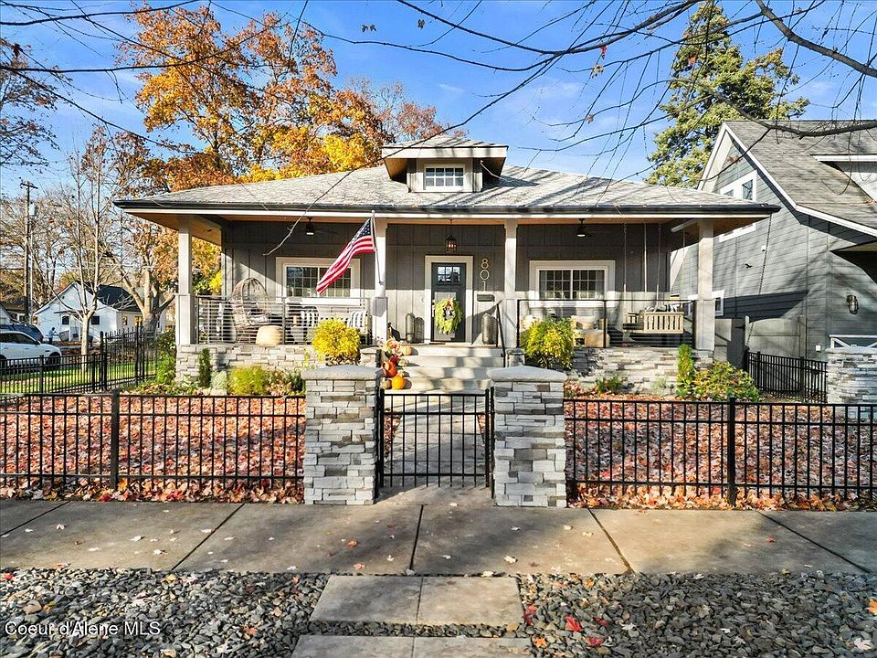 Welcome to 801 E Coeur d'Alene Avenue, a stunning home in the heart of Coeur d'Alene's historic Garden District, just blocks from downtown and the lake. Originally built in 1925 with a beautiful remodel finished in 2025, this home blends timeless character with modern comfort. Featuring approximately 3,600+ square feet, it offers an open-concept living space anchored by a cozy gas fireplace and a designer kitchen with quartz countertops, luxury vinyl plank flooring, and premium appliances. With a total of four bedrooms and four full bathrooms, this home provides ample flexibility for family and guests with two primary ensuites. Enjoy an oversized 640 sq/ft garage and private backyard with hot tub. The outdoor spaces and walkable location add to its charm, placing you just steps from restaurants, shops, and everything downtown Coeur d'Alene has to offer!