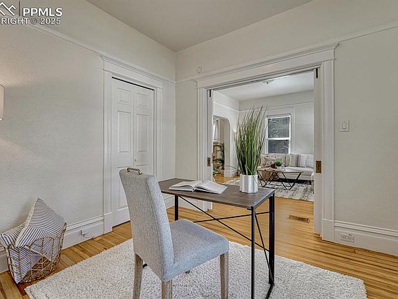 This charming home combines vintage character with thoughtful updates, all on a spacious corner lot just minutes from downtown. Step inside to find freshly refinished hardwood floors, new carpet, and fresh paint throughout. The main level features multiple living areas filled with natural light, two bedrooms that also make great office space, a full bathroom, dry bar, and a dining space that flows into the kitchen. The kitchen offers plenty of storage and counter space, with direct access to the large backyard for easy indoor-outdoor living. Upstairs, the primary suite feels like a retreat with its walk-in closet and attached bath featuring a clawfoot tub. Outdoors, enjoy a covered front porch, firepit area and space for outdoor dining with plenty of room left over to garden, play, or simply relax. A garage of this magnitude should not be overlooked. The oversized two car garage provides plenty of room for hobbies and storage complete with built-in shelving and workbenches. With easy access to restaurants, shops, parks, and entertainment, this home delivers the perfect blend of comfort, character, and convenience.