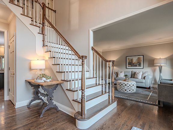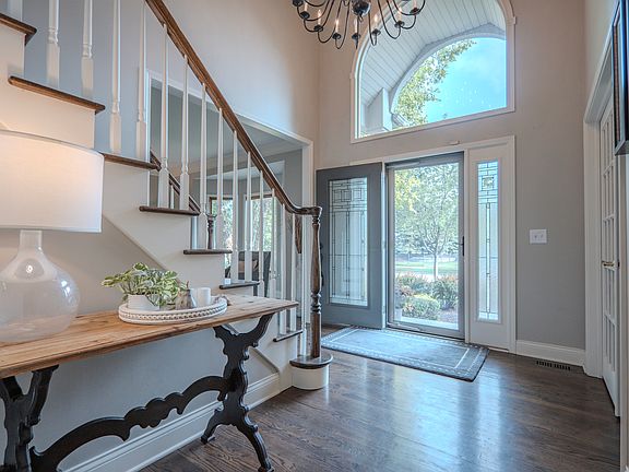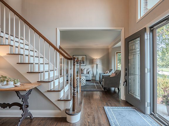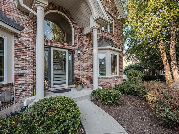 STUNNING FOX TRAILS SOUTH HOME! You will love the openness and space this home provides. The moment you step inside, the impressive two-story foyer and open staircase will capture your attention. Rich hardwood floors flow throughout most of the home; there's no carpet in sight. A set of French doors lead to a private den - an ideal space for remote work or quiet study. The kitchen flows seamlessly into the expansive vaulted family room with a stunning brick fireplace stretching from floor to ceiling. Offering a sense of retreat, the primary suite includes a tray ceiling, walk-in closet and a roomy vaulted primary bathroom. Natural light pours into the deep pour finished basement through above grade windows, creating a bright inviting space. The custom granite bar overlooks the back yard & features a wine frig & a beverage cooler. The 2nd family room offers full size above grade windows overlooking the brick paver patio. On cold winter nights you will love curling up next to the brick fireplace equipped with gas logs. This space is incredibly cozy. The basement offers tons of additional space for a game table, pool table or pingpong - you decide. Some of the recent updates include: Furnace - 2024, A/C - 2022, Roof, Siding & gutters - 2017, Hot water heaters (2) - 2022, Trex deck - 2017, DW - 2025, Refrigerator - 2019 (ice-maker is As-Is), Microwave - 2018, Hardwood floors refinished - 2018, Door to the deck - 2018. In addition, many light fixtures have been replaced. Move-in ready & quick close possible.