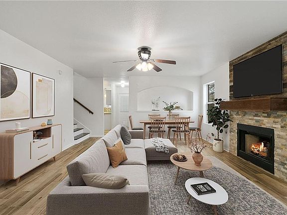 Cozy gas log fireplaceStunning laminate flooringAbundant natural lightOpen living layoutModern kitchenQuiet streetGreat curb appeal