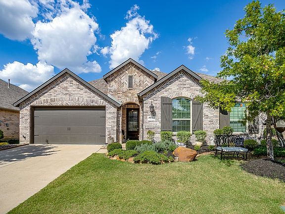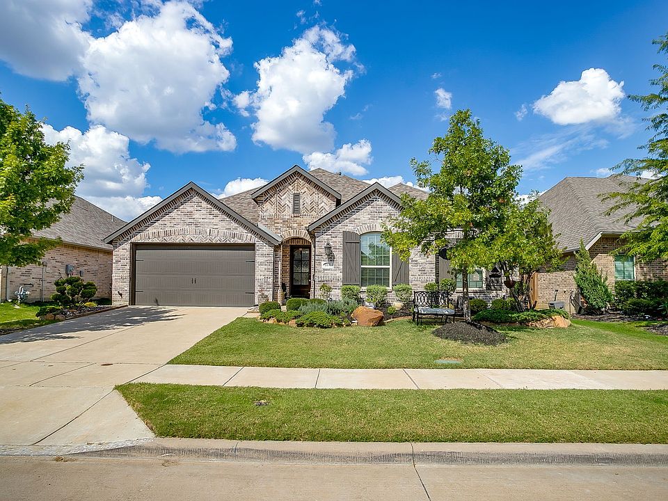 Beautiful Highland Home in sought-after Glen Crossing, Celina, featuring several thoughtful recent additions including a custom dry bar with wine fridge and beverage refrigerator, built-ins in the dedicated office, and decorative ceiling beams in both the entry and the primary bedroom. The open, light-filled living room centers on a stone fireplace with gas logs and flows to a stylish kitchen with granite countertops, painted cabinets, an island, and a gas cooktop. The secluded primary suite offers large windows and a spa-like bath with dual vanities, a separate garden tub, a walk-in shower, and a generous closet, while the split-bedroom layout provides privacy for three secondary bedrooms and access to two additional full baths. Step outside to an oversized backyard made for entertaining with a large covered patio, a new putting green, and a cozy fire pit. Glen Crossing residents enjoy outstanding amenities, including a resort-style pool, walking trails, dog park, and stocked fishing pond. You’re also just about three miles from quaint Downtown Celina’s shops, dining, and community events.