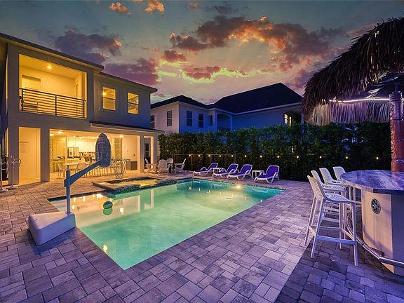 Experience luxury and performance in this stunning Reunion Resort home located on one of the community’s deepest lots with panoramic views of the Jack Nicklaus Golf Course. This property stands out as a high-producing short-term rental with strong financial performance and an active Reunion Resort membership, professionally managed by Magical Vacation Homes. The modern open floor plan features a spacious kitchen with granite countertops, stainless steel appliances, and a large breakfast bar that flows into the dining and living areas, ideal for entertaining or relaxing after a day at the parks. Step outside to your private retreat complete with a heated pool and spa, tiki bar with built-in BBQ grill, wine cooler, and mini-fridge, surrounded by lush landscaping and a personal putting green. Inside, the entertainment continues with a full arcade-style game room featuring basketball, racing, and air hockey, plus an upstairs loft with shuffleboard, poker table, Golden Tee, and Smart TV. Every bedroom is tastefully furnished with modern décor and ensuite baths, making this home perfect for guests and family alike. Reunion Resort is a world-class gated community offering 3 championship golf courses designed by Nicklaus, Palmer, and Watson, a multi-acre water park with lazy river, tennis and pickleball courts, fitness center, restaurants, spa, and 24-hour security. Located minutes from Walt Disney World® and major attractions, this property delivers the perfect balance of luxury, location, and income potential.