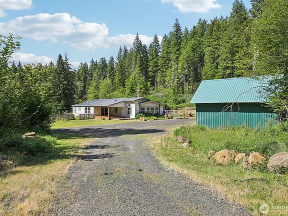 Spacious, open, & bright triple wide manufactured home situated on almost five acres of flat & gently sloped land with your personal creek running through it. Near Skamania Lodge! This lovely open concept home features vaulted ceilings, extra windows & large rooms including a primary suite, making single level living sweet on your personal piece of nature. Covered car port, chicken coop, a 2nd outbuilding, an animal pen, fenced areas for livestock, two large storage containers, & a finished shed! Whether fishing, camping, hiking, or just enjoying coffee or a local brew in town come, bring your RV, toys, or livestock & live the comfortable life today! Zoned R-2. Dividable! Buyer to do due diligence. Emergency generator stays.