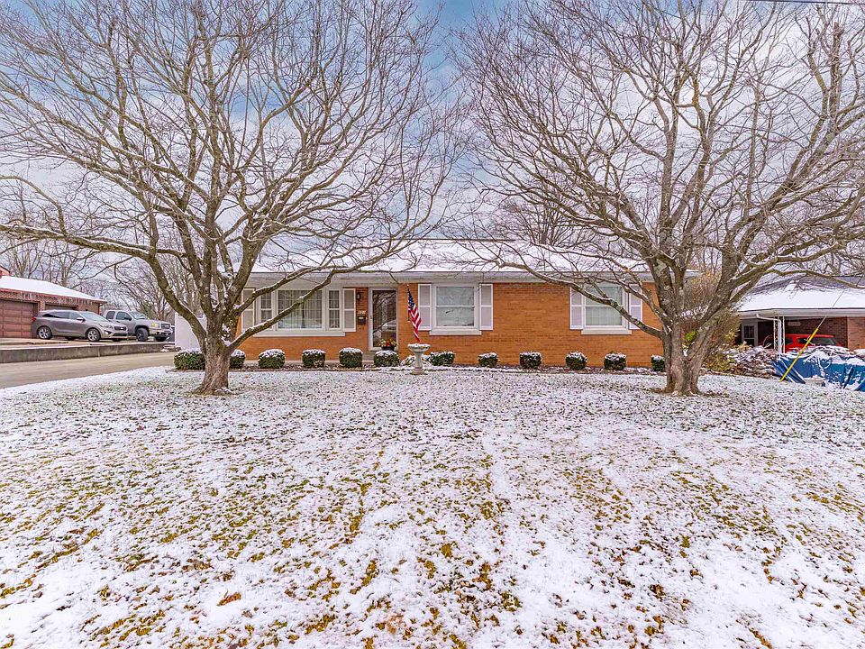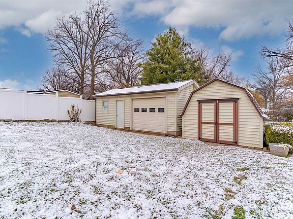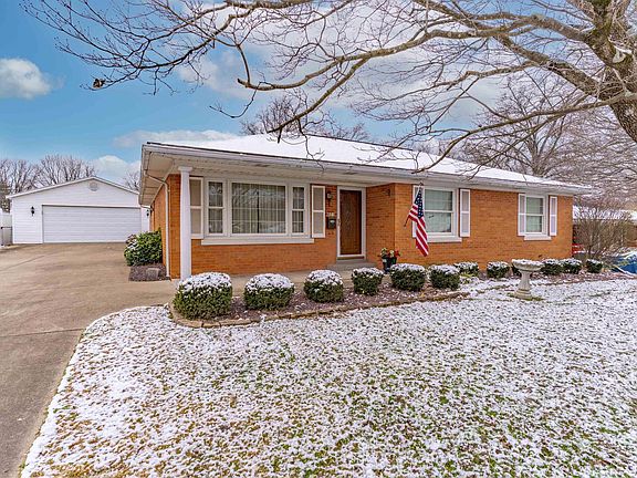Great location on the east side of Evansville. All brick ranch with a basement that has been well care for. New Roof 2023. The main floor has 3 bedrooms and one full bath. the living room has a large window allowing for tons of natural light. A spacious eat in kitchen with a gas range, dishwasher, and side by side refrigerator. The great room has a brick fireplace and a sliding door leading to the backyard. The lower level has a a rec room, a full bath, and a storage room with two freezers. There is a fourth bedroom in the basement but has no window. The laundry is in the lower level with the washer and dryer included. Large fenced in backyard and a wonderful detached two and a half car garage with built in storage. There is also an additional workshop with a garage entry, and a storage shed. Seller is providing a one year $515 AHS warranty.