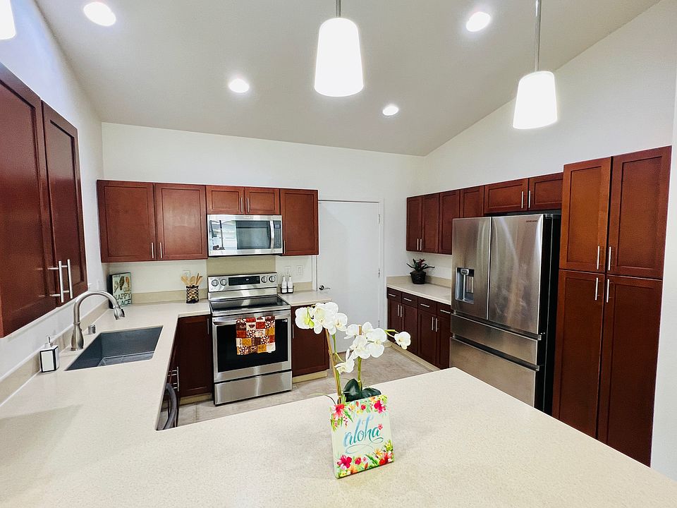 AVAILABLE MARCH 1, 2025. PET FRIENDLY. VERY LOW ELECTRIC BILL! NET METERED SOLAR PANELS AND SOLAR WATER HEATER. 2024 electric bill in the listing pictures. Located in the beautiful community of Olino at Mehana, you are going to love this 3 bedroom, 2 bath, 2-car garage with driveway single family, single level home. The home is also situated on a Cul-de-sac with minimal through traffic. Very well maintained with an open floor plan and modern designs throughout. The kitchen includes upgraded cabinets and all stainless steel appliances. Vinyl plank flooring throughout the common areas and brand new carpets in the bedrooms. Energy efficient Split Air Conditioning Systems in the living room and all of the bedrooms. Amenities include the Mehana community pool, gym, basketball courts, dog park, and walking/jogging paths. Centrally located in the heart of Kapolei, in close proximity to Costco, Home Depot, the Kamakana Alii Mall, and a very short distance to the freeway. Pet Friendly. No smoking or vaping allowed in the home. Renter's Insurance required.