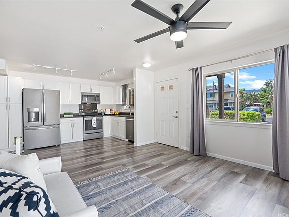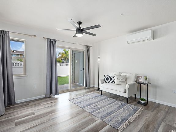 **NOW OFFERING** Price adjustment + $10K credit to the buyer! Sleek and stylish modern living awaits you in Olino at Mehana! This rarely available single level ground floor unit features vinyl plank flooring throughout, a spacious low maintenance backyard with astroturf, a walk-in closet in the primary bedroom, and you'll always stay cool and comfortable with a split A/C unit and ceiling fan in every room. Spend your days cooking up meals in your beautiful open kitchen with slate appliances or hosting outdoor parties in your fully fenced backyard. Or take a short neighborhood walk to enjoy all that Mehana has to offer including swimming pool, fitness room, plus multiple parks and playgrounds. You'll love being conveniently located in the heart of Kapolei close to shopping, restaurants, on/off freeway access, and more - nearly everything is close by. The epitome of easy living is found here so don't miss out and come home today!