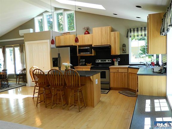 ENJOY the wooded setting of this newer home on Kirner Ridge! Open & sunny around the home with trees giving privacy & a restful view. Hardwood floors greet you as you enter the great room with soaring ceilings! Hickory cabinets, and a large eating/meal prep bar that separates kitchen from the living & dining. Cozy bonus room with wood stove & access to back yard. Generous sized laundry with desk & storage area. Ductless heat pump. Oversized 2 car garage (624') and small storage bldg. LOTS OF LIGHT!