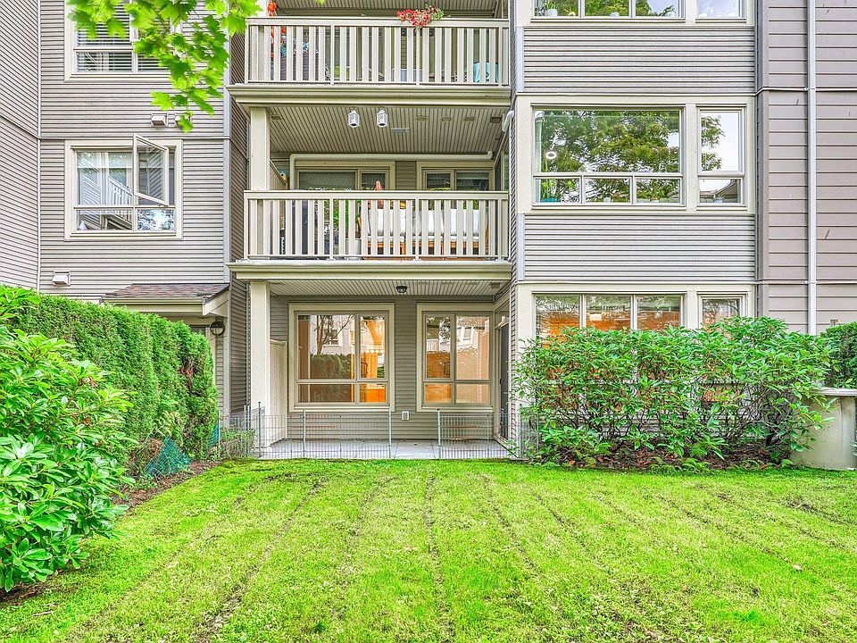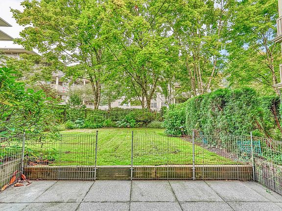 Ideally situated within the coveted community of KLAHANIE, enjoy a freshly painted garden-level 2 bed 2 full bath home at INGLENOOK! The prized enclosed backyard measures 32' x 25' has a beautiful WNE exposure; perfect outdoor space for grilling & area for pups to play! Cozy up in front of the fireplace this winter. Enjoy overheight ceilings with floor to ceiling windows that welcome natural light all day. ALL NEW APPLIANCES include full-size gas range, fridge, dishwasher, MW, SS fixtures, stone countertops & a dining table for 8+ people. NEW W/D. 1 full-size parking stall included (no locker), plenty of visitor parking, 2 domestic pets allowed & "Canoe Club" access: resort-like outdoor pool, hot tub, sauna, gym, indoor basketball court & tennis courts. OPEN HOUSE Sat 12-2P & Sun 2-4P!
