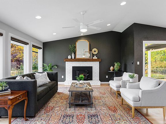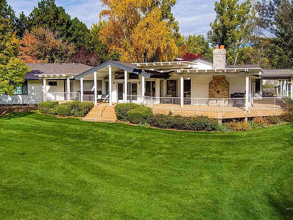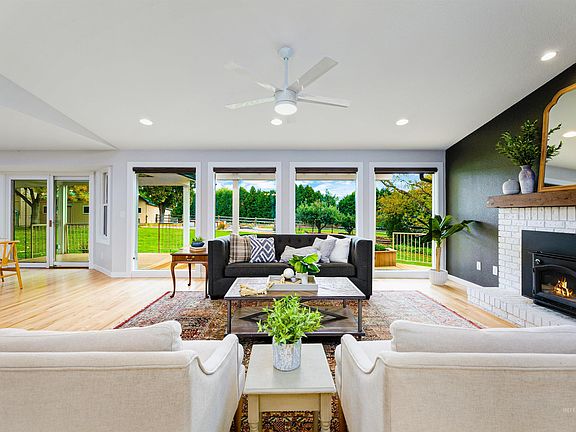 Experience the best of Eagle acreage living in this private 4.4-acre Eagle residence, surrounded by mature trees, a stocked pond, and tranquil nature views from every window. Nestled behind a gated entrance and tree-lined drive, this single-level updated home provides effortless comfort and privacy - with No HOA fees and ready for horses. Vaulted beam ceilings, rich hardwood and designer tile floors - and an open layout designed for both everyday living and elegant entertaining. The kitchen features granite countertops, a large island, and premium appliances. The owner’s suite includes pond views and a spa-inspired bath with soaking tub and dual vanities. Relax on the massive Trex deck overlooking the water, unwind in the hot tub, or recharge in the infrared sauna. Amenities include a heated 39’x16’ RV garage with 14’ door, a workshop and tack room, 400-amp service, two wells, one water share, multiple fruit trees, fenced pastures, large garden area, and 240V EV chargers. This property is a rare find, where refined comfort meets the quiet beauty of living on acreage - only minutes from downtown in a very private location.
