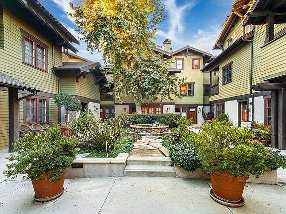 Enjoy real Elegant and comfortable living in this beautifully remodeled 2 BR 2.25 BA Craftsman style townhome which is located in most desirable Mission Meridian Village. Step into the entry with slate flooring and durable Berber carpet that leads you to the first floor where you can experience the excellent) floor plan which includes Gleaming engineered flooring. The kitchen has resilient granite counter tops, refrigerator, upgraded slate floors, upgraded light fixtures, custom built shelf for t.v. or appliance and new kitchen faucet and sprayer. A spacious dining area with upgraded chandelier and crown moulding is adjacent to the kitchen for convenience. A darling powder room with half bath is with slate floors is perfectly situated off the stairs. The LR has a redesigned wood burning/gas fireplace, crown moulding, lovely floors and a door to a quaint balcony. A few more steps and you will find the stack washer and dryer and 2 BR'S each with their own full BA. The first BR is ample sized, has ceiling fan, custom closet, good natural light and engineered flooring. Full BA features slate tile flooring, upgraded light fixtures and sliding shower doors. Main suite is especially comfortable and boasts shiny engineered flooring, custom built walk-in closet with upgraded light fixtures, ceiling fan and crown moulding. Main BA has slate floors, custom built glass cabinet, sliding shower doors, newly reglazed bathtub and new shower head. Gold line, shops, restaurants, park near