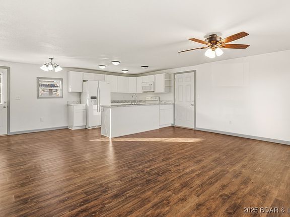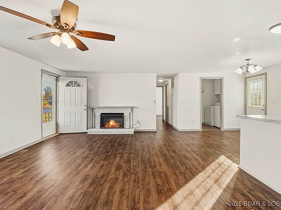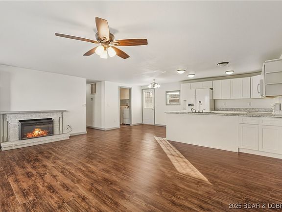 Why rent when you can own this AFFORDABLE, 2 bedroom, 1 bathroom home on a flat, level lot within the Eldon City Limits complete with a one car attached garage. GUTTED TO THE STUDS, this home has been completely renovated including LVP flooring throughout, sheetrock & paint, kitchen cabinets, counter & appliances that include cookstove, built in microwave, dishwasher & refrigerator, laundry room w/ storage cabinets & washer/dryer included, bathroom with tub/shower combo & new vanity, not one but two walk in closets in each bedroom, all new light fixtures throughout & the cherry on top, NEW HEAT PUMP & WATER HEATER in 2022. New garage door & opener too! With proven rental history, you can't go wrong with adding this property to your portfolio. Within walking distance of the ball fields, exercise trails, tennis/pickle ball courts, water park, etc. at Eldon Air Park & Eldon Middle School.