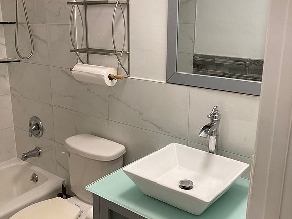 Offers flexibility with a modern tub/shower combo or full standing shower option.