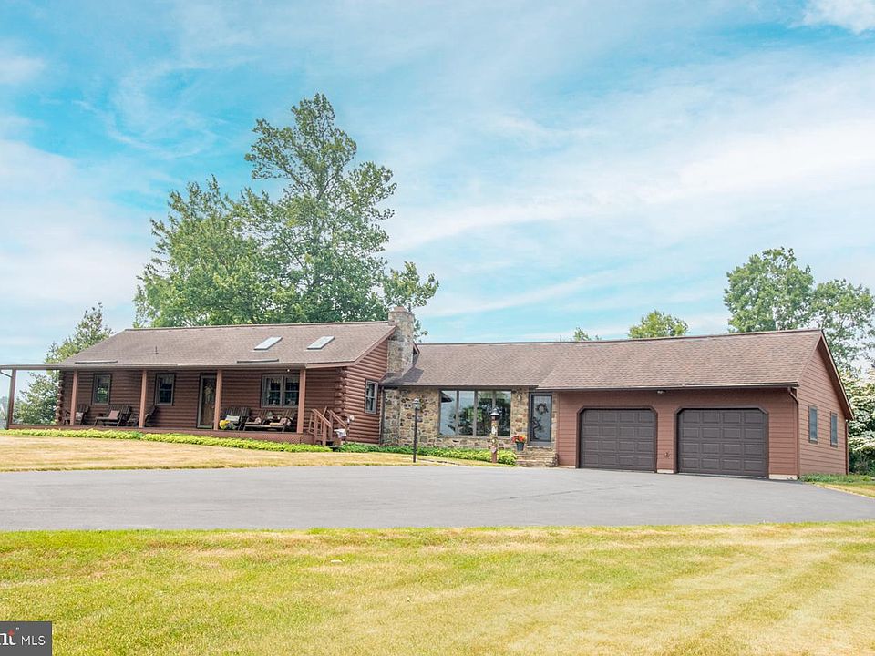 The rare opportunity is now to own this home located on one of the best lots in Chester County with a spectacular view of Marsh Creek Lake! The main part of the home is log construction with a large stone front addition that was added in the 1990's. The home features a spacious Great Room with a stone fireplace complete with a convenient propane gas insert. The ceiling is vaulted with skylights and there is hardwood flooring. The huge country kitchen addition boasts a breakfast bar, quartz tops, stainless steel appliances, cathedral ceiling, skylights, recessed lights and wood flooring. There is also a slider leading out to the slate rear patio area. There are 2 bedrooms and a full bathroom with a newer shower that was installed in 2021. The powder room/laundry room combo completes the one floor living that this home offers. Most of the interior showcases the beauty of natural wood. The over-sized 2 car garage is attached to the kitchen addition. There is a full front porch, a full basement under the main section of the home, and there have been many recent updates. There is a generator included, Geothermal heating, and quality replacement windows have been installed. This meticulously maintained home in this fantastic location will not disappoint. Be sure to tour it today before it is gone!