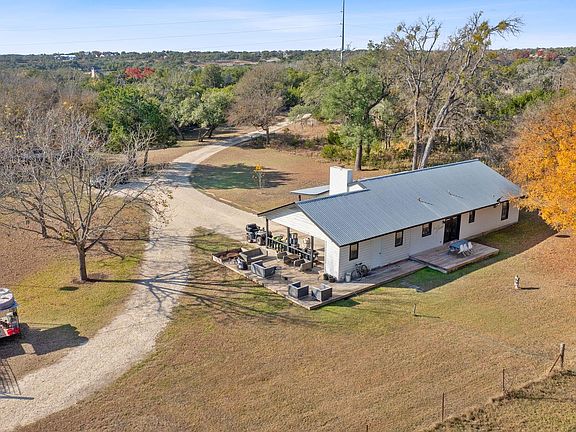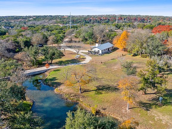 Discover Your Private Oasis in the Heart of Dripping Springs. Experience the ultimate rare find: a one-of-a-kind, spring-fed live water estate that perfectly balances secluded country tranquility with unparalleled urban convenience. Nestled on approximately 21.49 picturesque acres of heavily wooded land, this property offers a peaceful retreat just 1.2 miles from the local Home Depot and the vibrant amenities of downtown Dripping Springs. Exceptional Land & Water Features This property is defined by its natural beauty and meticulously maintained infrastructure. A rare spring-fed creek flows through the property, enhanced by a concrete dam and bridge that provide both functionality and a serene focal point for the landscape. Enjoy long-range, 360-degree views of the rolling Hill Country from several vantage points on the property. Fully equipped with an independent well and septic system, providing self-sufficiency. Charming guest residence: At the heart of this sprawling estate sits a recently renovated 1,457 sq. ft. guest house. This charming residence features: 2 Bedrooms / 2 Full Bathrooms: Designed with an open, airy feel. A seamless blend of rustic charm and modern upgrades (fully remodeled by the current owner). A cozy wood-burning fireplace anchors the living space, while a modern metal roof and brick-veneer exterior ensure durability. Taxes: Benefit from significantly reduced property taxes thanks to an active wildlife exemption, which also preserves the natural habitat for local fauna. Prime Location & Lifestyle The Best of Both Worlds: Get the quiet of true country living without the commute. You are minutes away from the intersection of Hwy 290 and RR12, placing the best boutiques, breweries, and restaurants of Dripping Springs right at your doorstep. The property is heavily wooded with a variety of mature trees and rolling slopes, creating a private forest-like atmosphere.