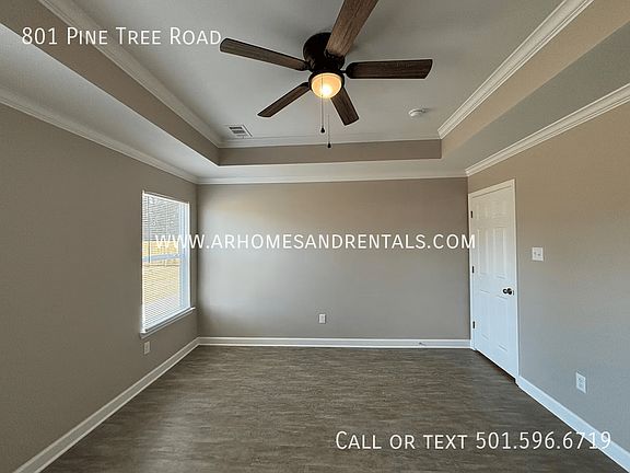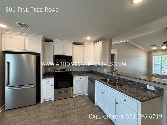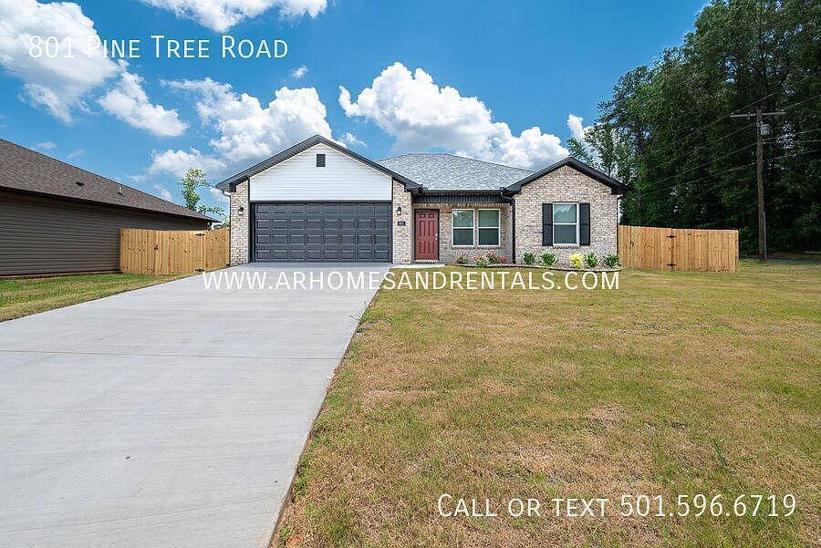 801 Pine Tree Road Jacksonville, AR ** Move-in Special 50% off Deposit ** 250 Bonus Referral ** FEATURES: New Construction -3 Bedrooms -2 Bathroom -2 Car Garage -All electric -Central heat and air -Ceiling fans -Stainless steel appliances -Granite countertops -Refrigerator -Electric stove -Dishwasher -Microwave -Pantry -Washer and dryer hookups -Walk-in closet -Master Bath -Spacious yard -Fenced-in backyard -Porch -Patio Don't miss out on the opportunity to make 801 Pine Tree Road All Electric Central Heat And Air (Electric) Driveway/Garage Electric Stove Electric Water Heater Newly Constructed Porch/Patio Refrigerator/Stove/Microwave/Dishwasher Single Family Home Spacious Front Yard/Fenced In Backyard Washer And Dryer Connection