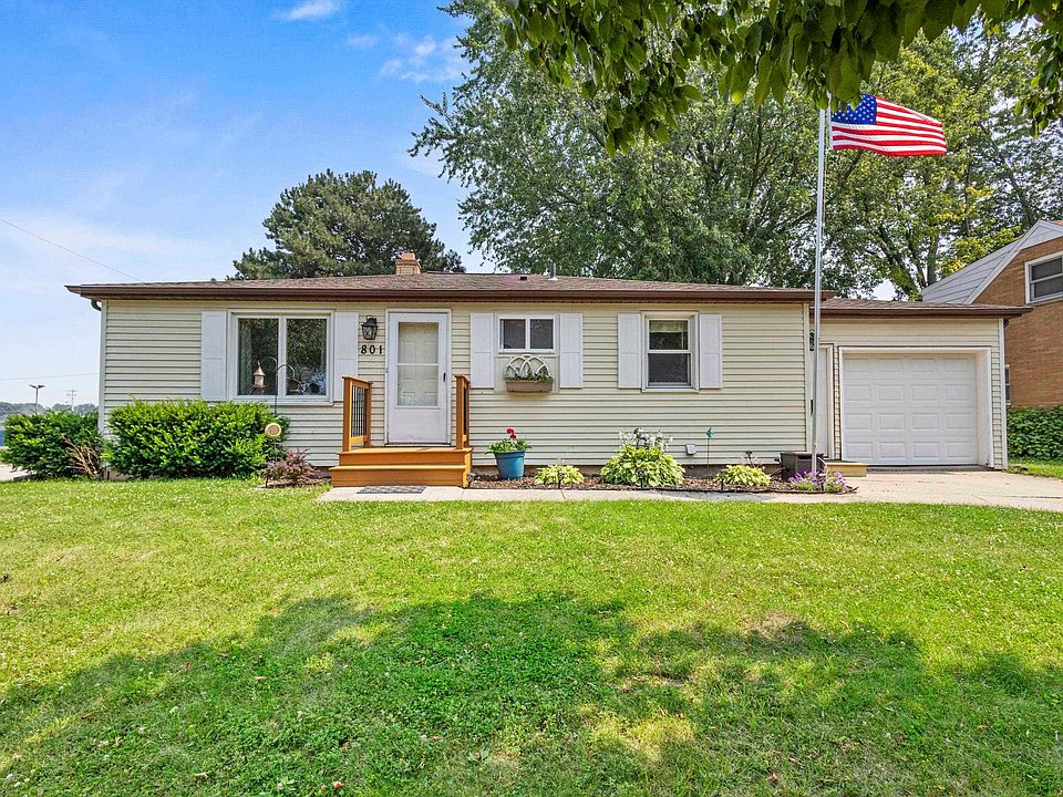 Cute and clean! Lots of updates in this 1 story home with a 1 stall attached garage, nice size yard and shed! Light and bright living room, 3 nice size bedrooms all with closets and ceiling fans. Kitchen offers refrigerator, stove, dishwasher & microwave along with the corner table and bench! Full very clean poured basement includes the washer & dryer, plenty of space in the basement for storage or finishing off for additional sq.ft. Per seller roof is 2025, Central air is 2024. This adorable home is nicely landscaped and located near schools, shopping and Hwy access. Seller request 48 hours for binding acceptance.