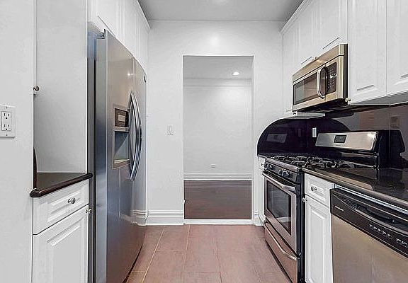 **All Showings and Open Houses are By Appointment Only** A Treasured Place in the City! With its delightful layout, this renovated Washington Heights apartment invites you on a journey of discovery. The first floor unit with its expansive exposure to light and trees, is positioned toward the rear of the building where it's especially quiet. A roomy foyer is the starting point, with a hallway winding through the sublime treasure hunt. Gleaming coffee-colored hardwood floors run throughout the city home, complemented by white walls, classic crown molding, baseboards, panel doors and lovely window frames. The two bedrooms are positioned at opposite ends for maximum privacy. The first is on your right, with twin deep-set windows, a large closet and a fun corner nook. Continuing along, you'll come to a beautifully remodeled kitchen with tile floors, a window, black granite counters, stainless steel appliances, pantry and white designer cabinetry with brushed metal knobs. The anteroom by the kitchen will certainly accommodate a table, but you may wish to bring meals into the adjacent living room instead. This large and welcoming space has recessed lighting and two oversized windows offering wonderful leafy views. It's the perfect hub for meals, relaxing and entertaining. A generously sized back bedroom with window and closet could also serve as an office or library. A meticulously refinished bathroom is at the end of the hall with wall-to-wall white tiling, a pedestal sink and a soaking tub/shower combo with handheld spray attachment. There's even a stacked washer and dryer tucked neatly into a closet, a bonus luxury to be sure. Originally delivered in 1920, the elegant six-story building in the Audubon Park Historic District has more recently been converted to condos. The grand lobby is emblematic of a long-ago era; there's a live-in super as well, plus elevator service and onsite laundry. You'll be on a tree-lined street with an easy stroll to Riverside Park and the scenic waterfront. Equally close is Broadway with uptown bars and restaurants, and the 157 Street Station on the 1 line. Location, convenience and a fabulous floorplan all come together perfectlyyou are home!